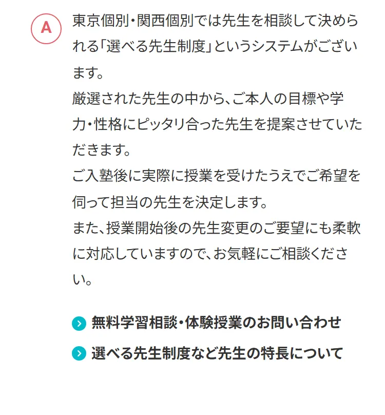 東京個別・関西個別の特長