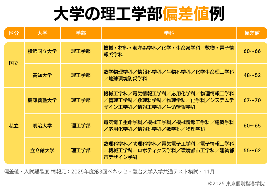 理工学部のある大学と偏差値